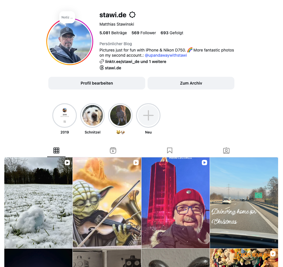 Bisher gab es auf dieser Seite eine direkte Vorschau zu meinem Instagram-Account. Da ich mich im Bereich Social Media zukünftig etwas einschränken möchte, habe ich das dazugehörige Tool entfernt und werde vorerst hier auf www.stawi.de keine Inhalte mehr aus Instagram posten oder verlinken.